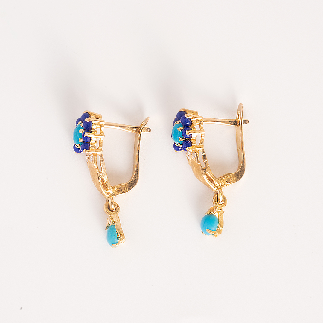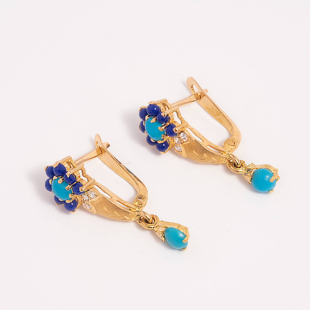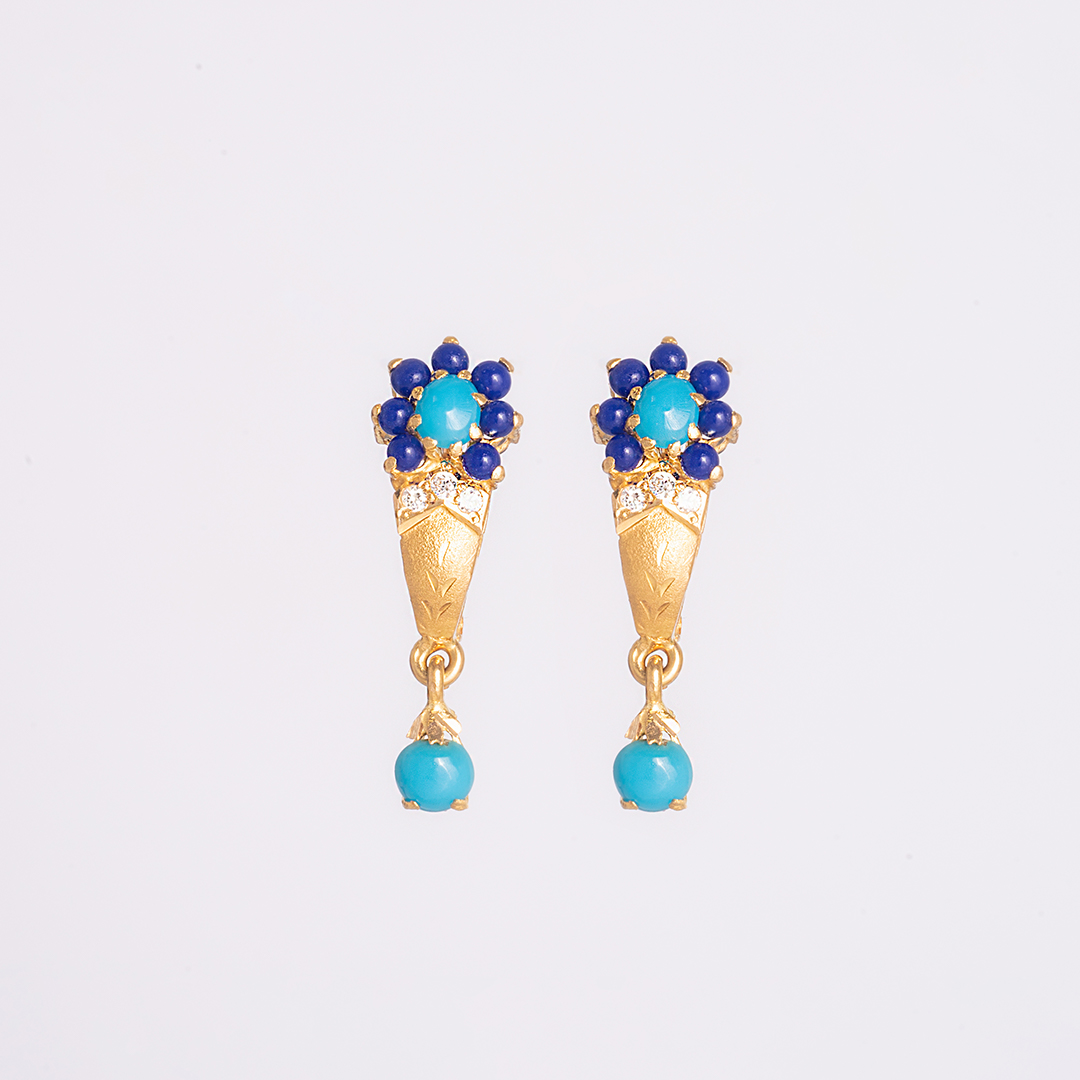 Blue Stripes & Stone Earrings
